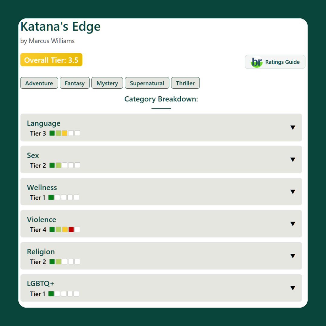 Join a growing movement of readers who rely on consistent and unbiased content ratings to choose books that align with their values.